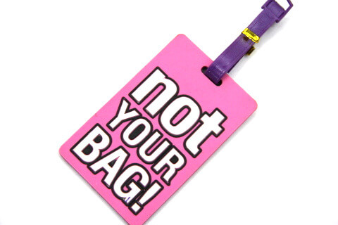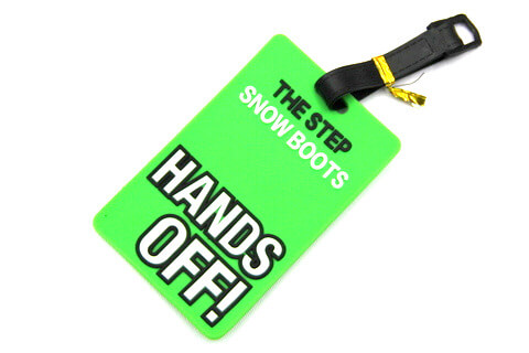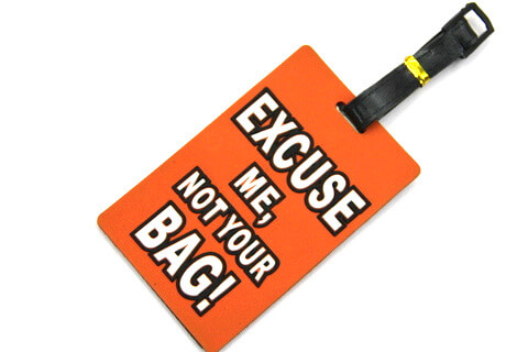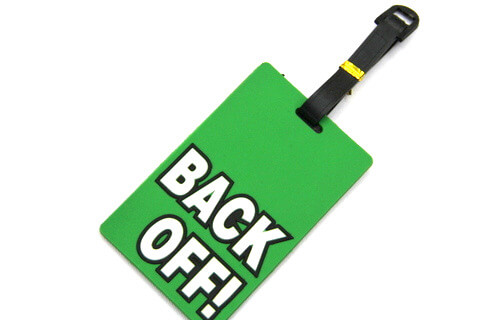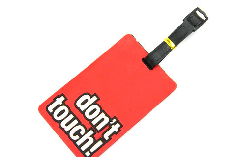 Silicone/Rubber Luggage tags of warning words and saying. With custom personalized designs. Ideal for promotional and souvenir gifts. Price list and Catalog free download.